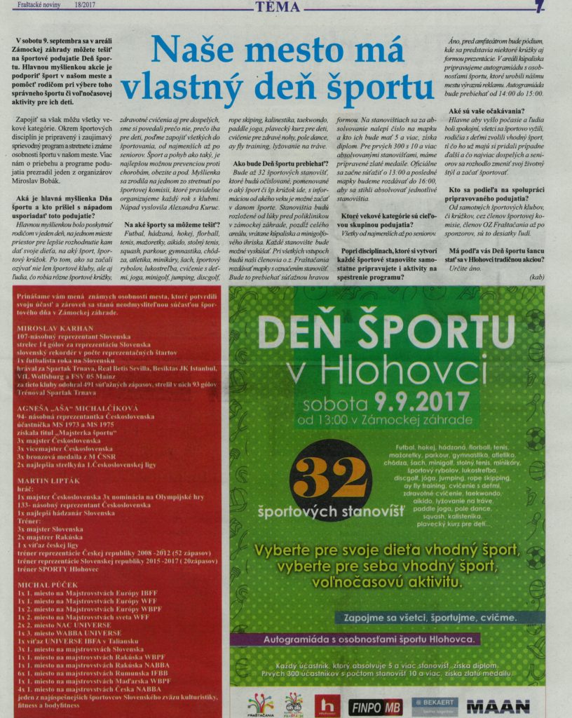Deň športu v Hlohovci, 9. septembra 2017